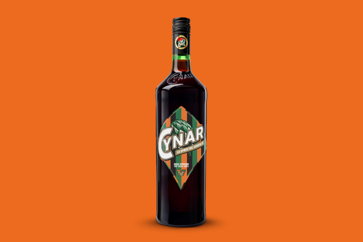 Graphic design of the limited edition Cynar bottle in collaboration with Venezia FC